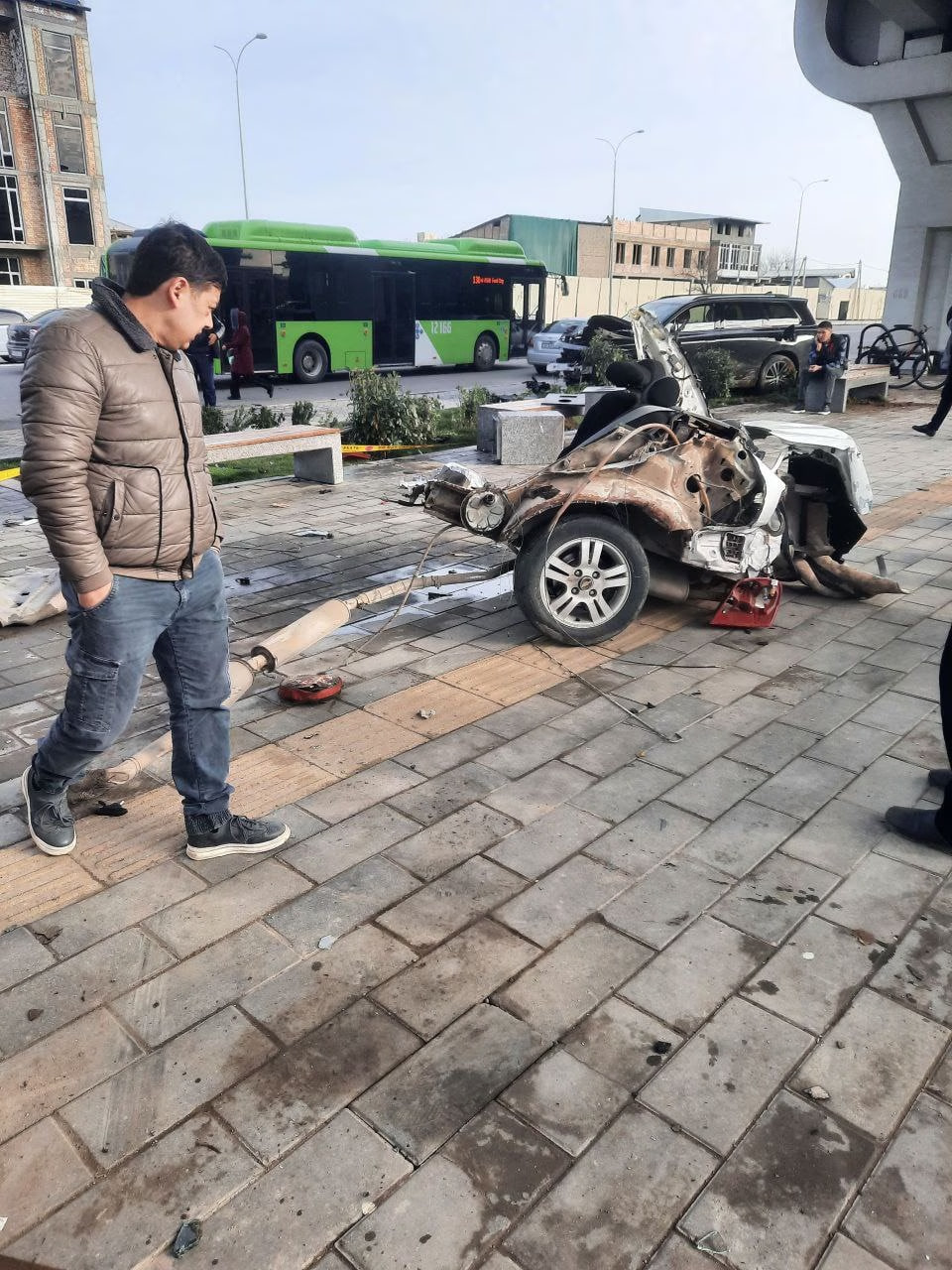 ЙТҲ оқибатида Lacetti автомобили жиддий техник шикастланган ва иккига бўлиниб кетган. Ҳодиса натижасида Lacetti ҳайдовчиси ҳамда бекатда турган бир нафар пиёда жароҳат олган. Уларга шифокорлар томонидан биринчи тез тиббий ёрдам кўрсатилган.