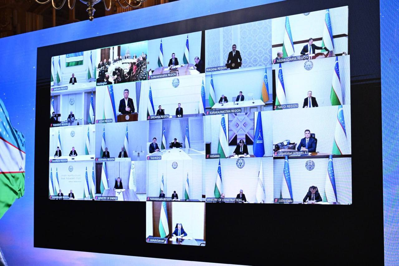 Videoaloqa orqali Oʻzbekiston hududlari rahbarlari ham uchrashuvda ishtirok etdi.